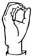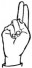 На ћирилици написано БУДИМИР БРЕСНОПОЉАЦ састоји се из 18 слова [?]. Исписано ћириличном једноручном азбуком за глувонеме: